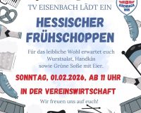 Der Turnverein Eisenbach lädt für Sonntag, den 1. Februar 2026, herzlich zu einem Hessischen Frühschoppen in die Vereinswirtschaft ein. Beginn der Veranstaltung ist um 11