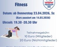 Am Donnerstag, den 24.03.2026, startet der nächste Kurs, der wöchentlich von 19:30 – 20:30 Uhrstattfindet und 5 Termine umfasst. (Kurspause am 14.05.2026) Kondition, Kraft und
